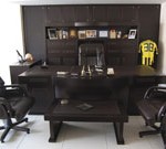 Məkan girişində ilk qəbul tavandakı işıqlandırma və arxa panonun bütövlüyü ilə istifadəçiyə istiqamətləndirmə məqsəd qoyulmuşdur. Eğrisel formaları ilə bu düşüncə dəstəklənmişdir. İstifadəçi masası olaraq yenə eyni Eğrisel xəttlərə sahib anlayışı tamamlayıcı xüsusiyyətdə Amir komandanın idarəçi masası və sehpası istifadə edilmişdir. İşıqlandırma birbaşa və endirekt olaraq iki şəkildə çözümlenmiştir. Funksionallıq yanında bəzi divar kağızı cədvəl və s kimi dizaynı tamamlayıcı vizual elementləri istifadə edilmişdir.